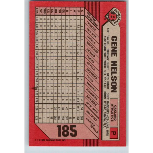 1989 Bowman #185 Gene Nelson NM-MT Oakland Athletics Baseball Card