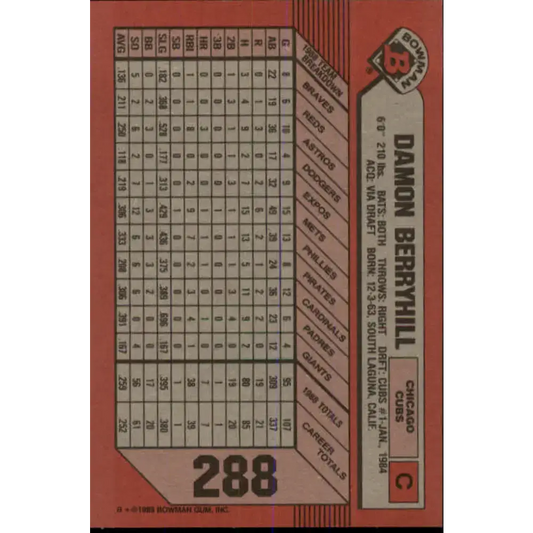 1989 Bowman #288 Damon Berryhill NM-MT Chicago Cubs Baseball Card