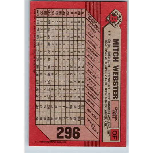 1989 Bowman #296 Mitch Webster NM-MT Chicago Cubs Baseball Card