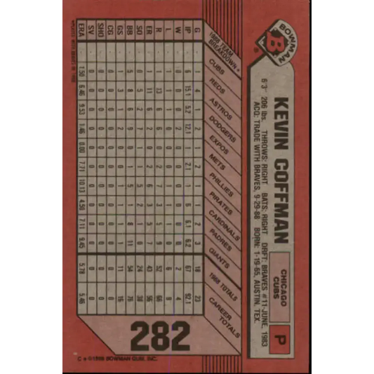 1989 Bowman #282 Kevin Coffman NM-MT Chicago Cubs Baseball Card