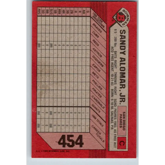 1989 Bowman #454 Sandy Alomar Jr. NM-MT RC Rookie San Diego Padres Baseball Card