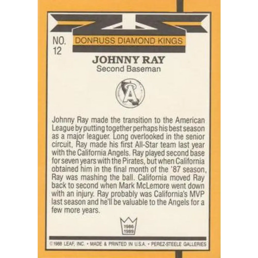 1989 Donruss #12 Johnny Ray DK NM-MT California Angels Baseball Card