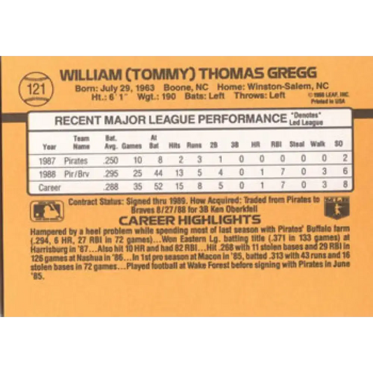 1989 Donruss #121 Tommy Gregg NM-MT Atlanta Braves Baseball Card