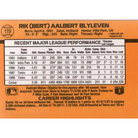1989 Donruss #119 Bert Blyleven UER NM-MT Minnesota Twins Baseball Card