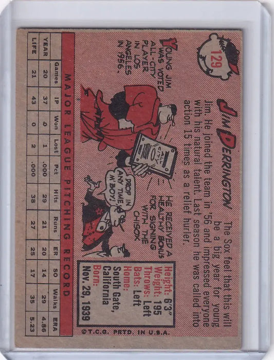 1958 Topps #129 Jim Derrington - Chicago White Sox RC