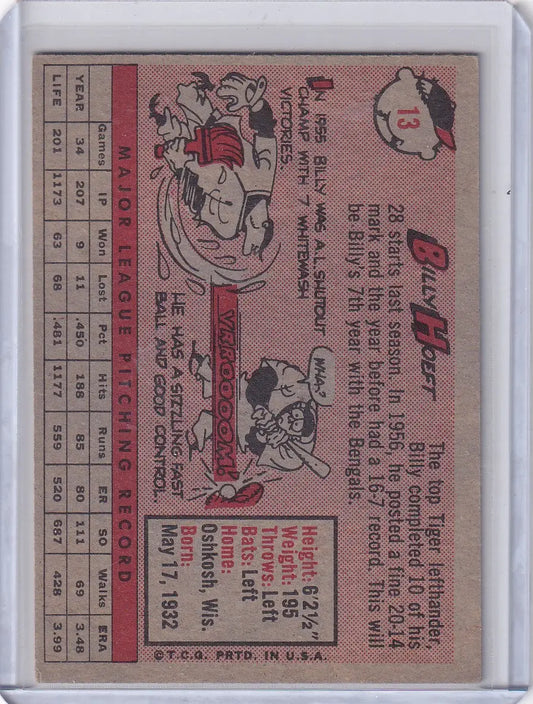 1958 Topps #13 Billy Hoeft - Detroit Tigers