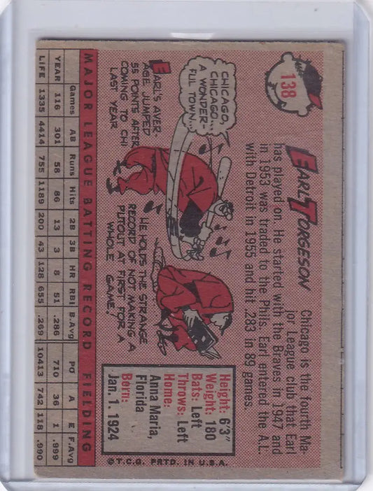1958 Topps #138 Earl Torgeson - Chicago White Sox