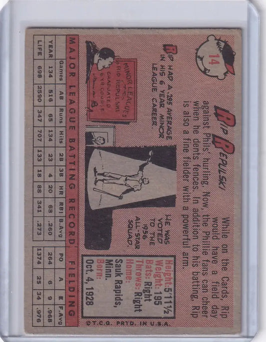 1958 Topps #14 Rip Repulski - Philadelphia Phillies