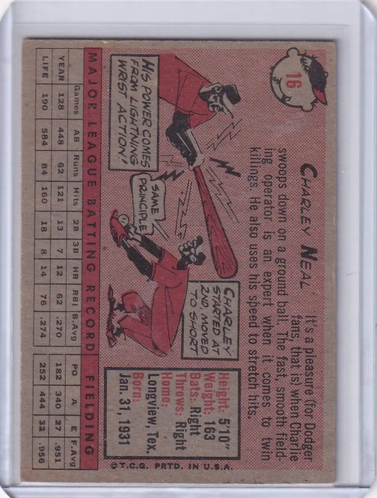 1958 Topps #16 Charlie Neal - Los Angeles Dodgers