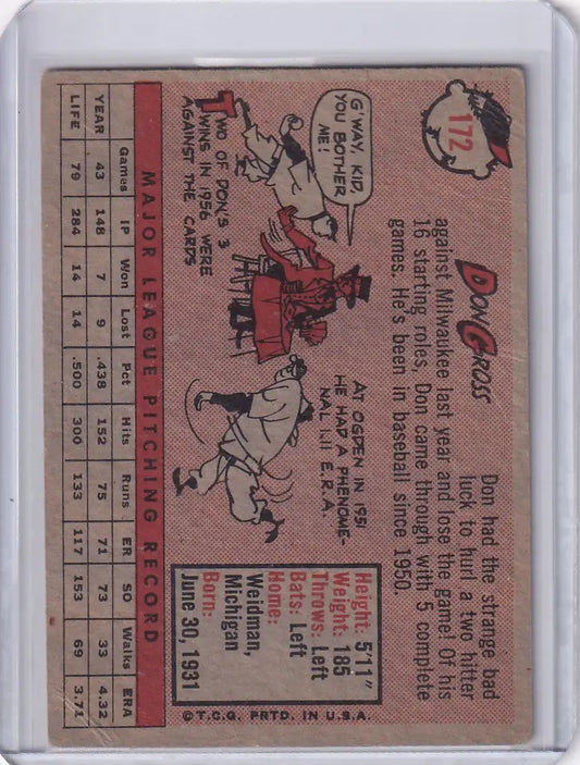 1958 Topps #172 Don Gross - Pittsburgh Pirates