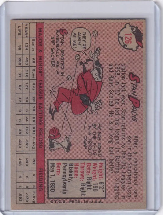 1958 Topps #126 Stan Palys - Cincinnati Reds RC