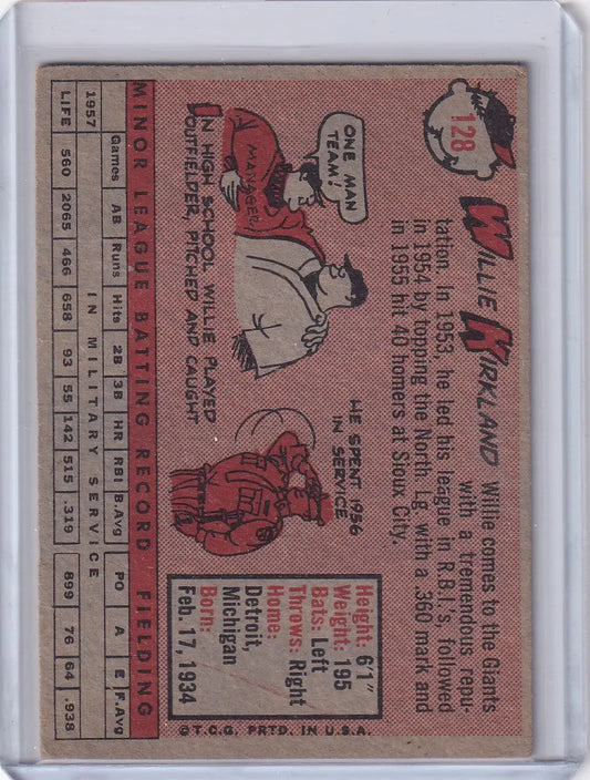 1958 Topps #128 Willie Kirkland - San Francisco Giants RC