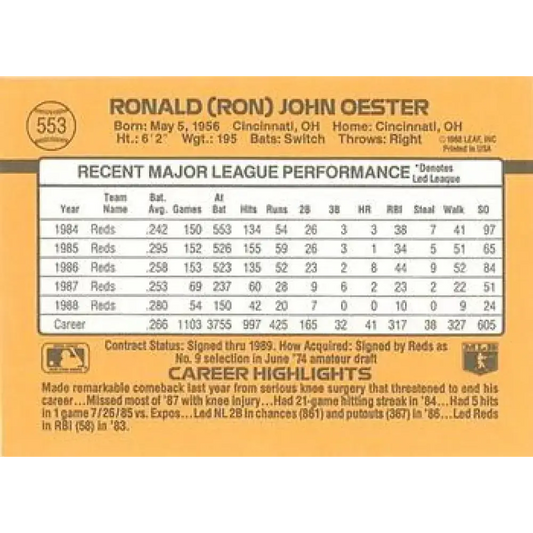 1989 Donruss #553 Ron Oester DP NM-MT Cincinnati Reds Baseball Card