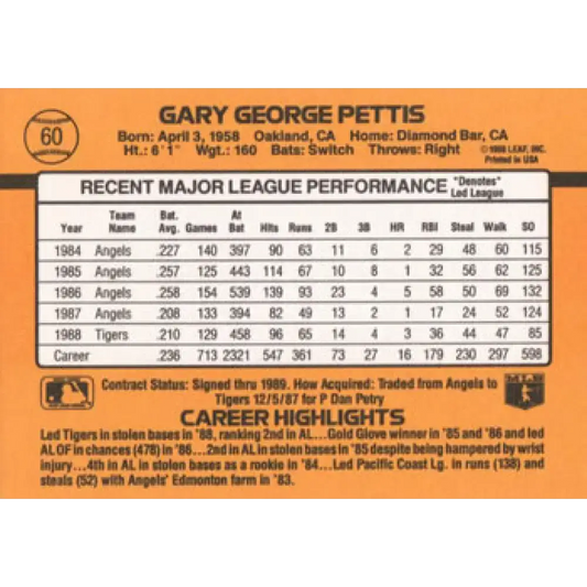 1989 Donruss #60 Gary Pettis NM Near Mint Tigers ID:44505