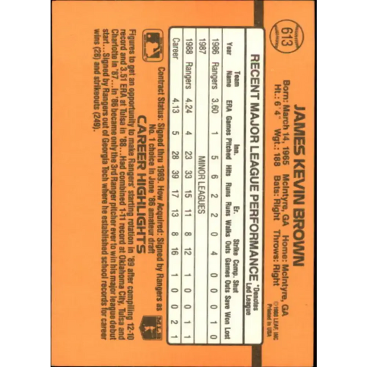 1989 Donruss #613 Kevin Brown NM Near Mint Rangers DP