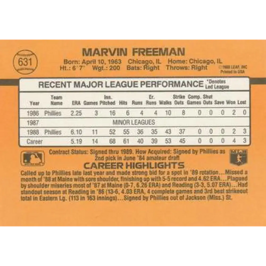 1989 Donruss #631 Marvin Freeman DP NM-MT Philadelphia Phillies Baseball Card