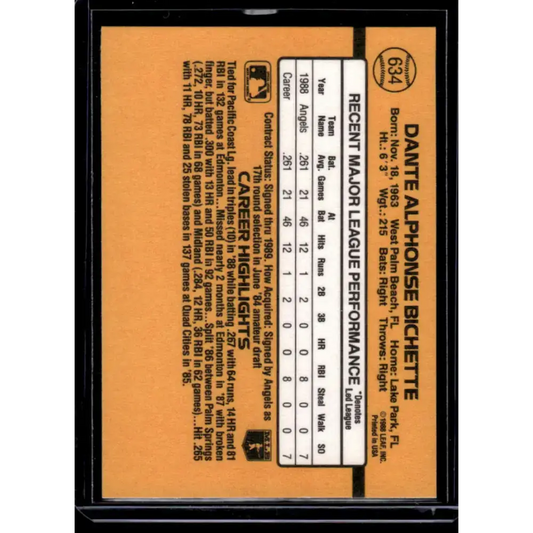 1989 Donruss #634 Dante Bichette California Angels NM-MT Baseball Card