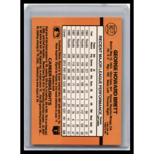1989 Donruss #BC-7a George Brett NM-MT Kansas City Royals Baseball Card
