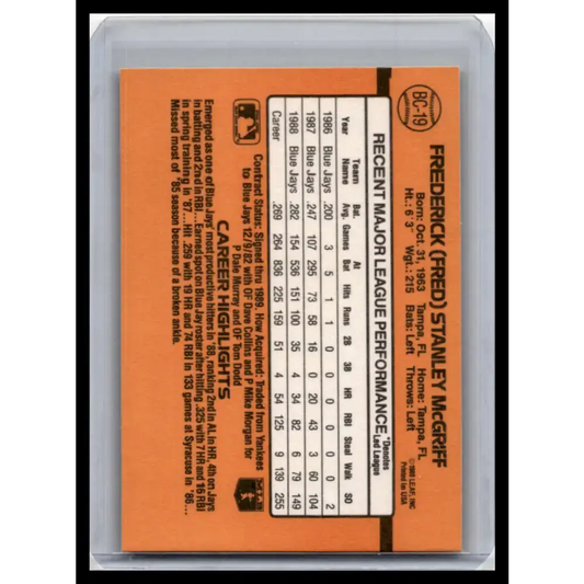 1989 Donruss #BC-19d Fred McGriff NM-MT Toronto Blue Jays Baseball Card