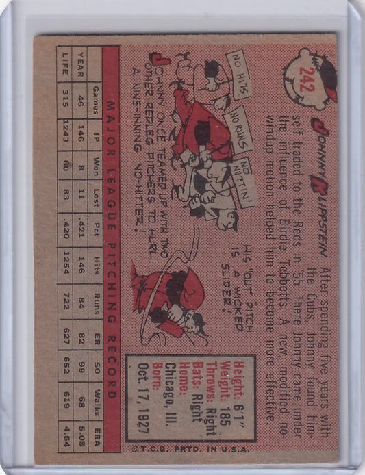 1958 Topps #242 Johnny Klippstein - Cincinnati Reds