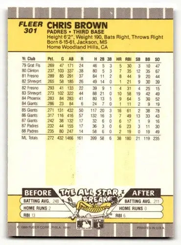 1989 Fleer #301 Chris Brown San Diego Padres Baseball Cards NM-MT ID:54612