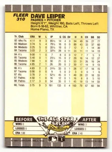 1989 Fleer #310 Dave Leiper San Diego Padres Baseball Cards NM-MT ID:54583