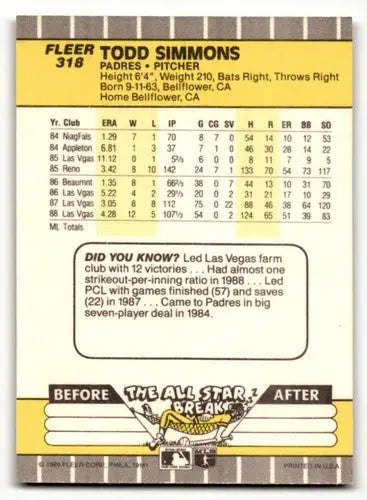 1989 Fleer #318 Todd Simmons San Diego Padres Baseball Cards NM-MT ID:54608