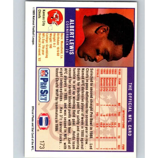 1989 Pro Set #173 Albert Lewis NM-MT Kansas City Chiefs Football Card