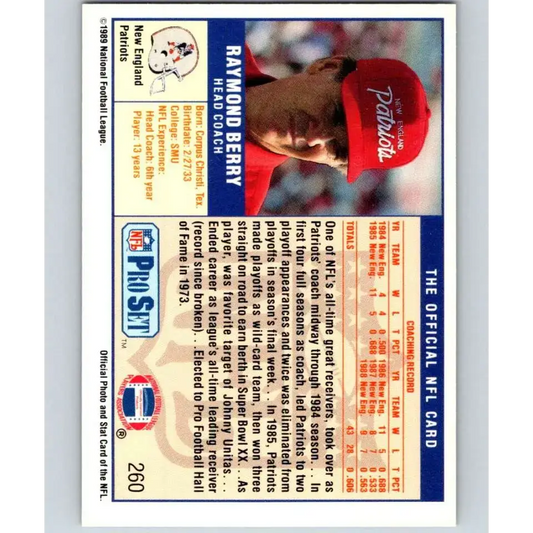 1989 Pro Set #260a Raymond Berry CO NM-MT New England Patriots Football Card