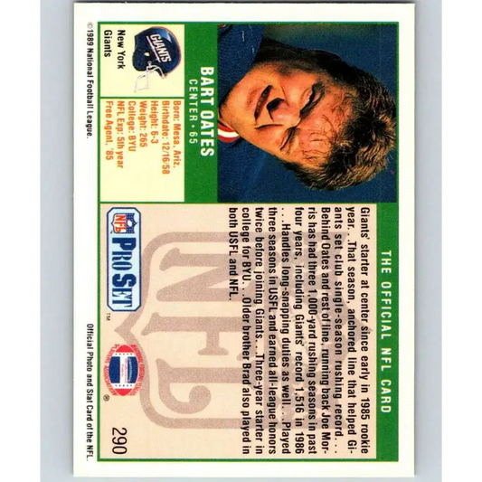 1989 Pro Set #290 Bart Oates NM-MT New York Giants Football Card