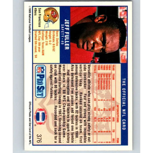 1989 Pro Set #376 Jeff Fuller NM-MT San Francisco 49ers Football Card