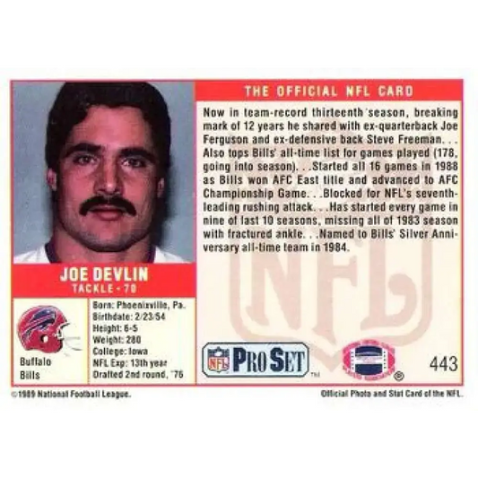 1989 Pro Set #443 Joe Devlin NM-MT Buffalo Bills Football Card