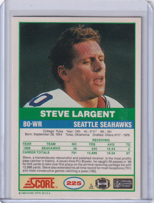 1989 Score Football #225 Steve Largent - Seattle Seahawks
