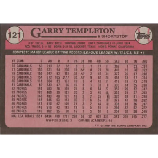 1989 Topps #121 Garry Templeton NM-MT San Diego Padres Baseball Card