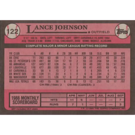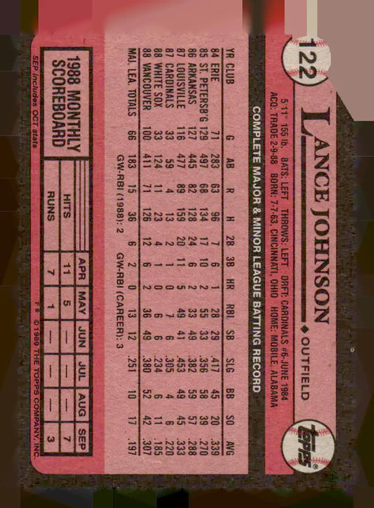 1989 Topps #122 Lance Johnson NM-MT Chicago White Sox Baseball Card
