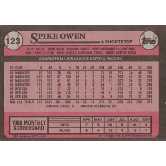 1989 Topps #123 Spike Owen NM-MT Boston Red Sox Baseball Card