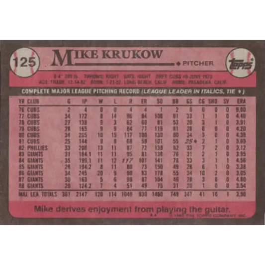 1989 Topps #125 Mike Krukow NM-MT San Francisco Giants Baseball Card