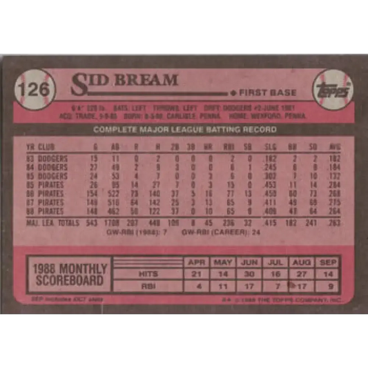 1989 Topps #126 Sid Bream NM-MT Pittsburgh Pirates Baseball Card