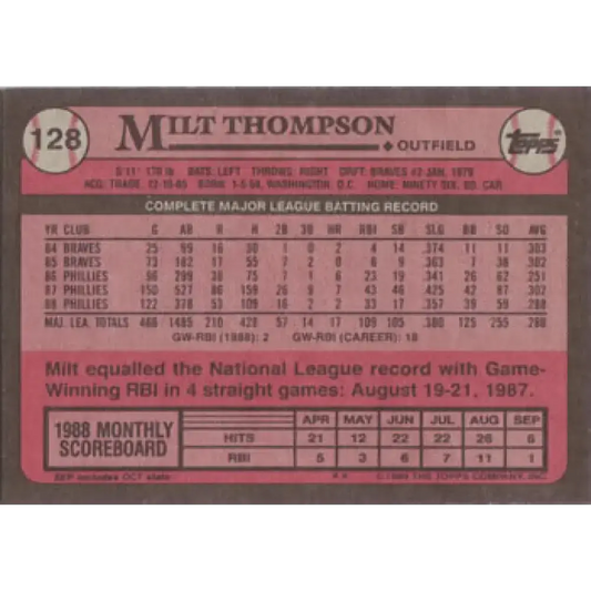 1989 Topps #128 Milt Thompson NM-MT Philadelphia Phillies Baseball Card
