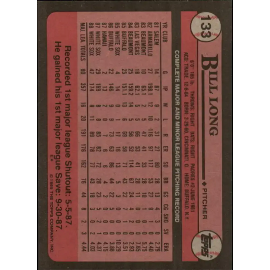 1989 Topps #133 Bill Long NM-MT Chicago White Sox Baseball Card