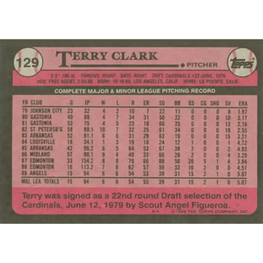 1989 Topps #129 Terry Clark NM-MT RC Rookie California Angels Baseball Card
