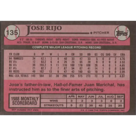 1989 Topps #135 Jose Rijo NM-MT Cincinnati Reds Baseball Card