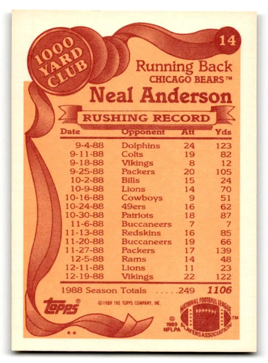 1989 Topps #14 Neal Anderson 1000 Yard Club