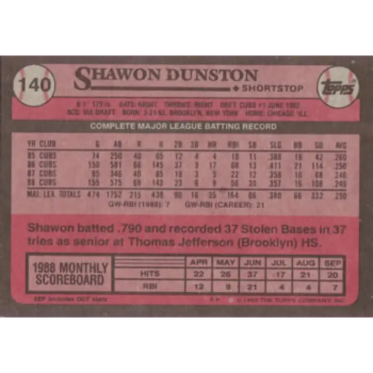 1989 Topps #140 Shawon Dunston NM-MT Chicago Cubs Baseball Card