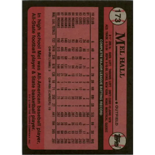 1989 Topps #173 Mel Hall NM-MT Cleveland Indians Baseball Card