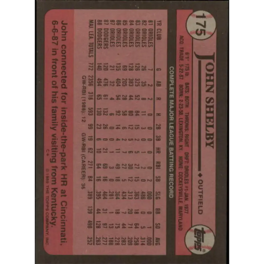 1989 Topps #175 John Shelby NM-MT Los Angeles Dodgers Baseball Card