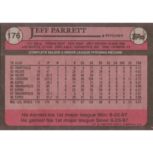 1989 Topps #176 Jeff Parrett NM-MT Montreal Expos Baseball Card