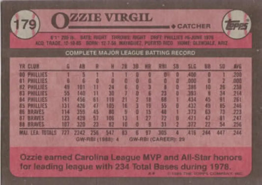 1989 Topps #179 Ozzie Virgil NM-MT Atlanta Braves Baseball Card