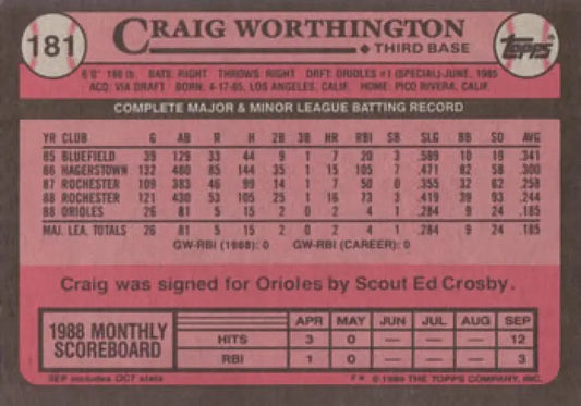1989 Topps #181 Craig Worthington NM-MT Baltimore Orioles Baseball Card