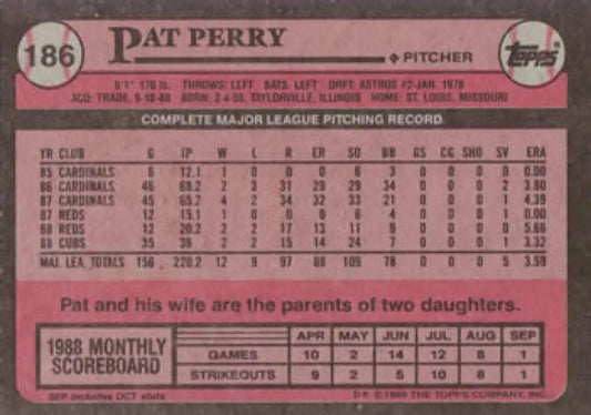 1989 Topps #186 Pat Perry NM-MT Chicago Cubs Baseball Card